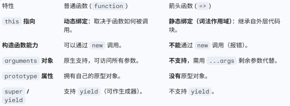 3.1 JS 的箭头函数和 function 函数,这两种函数有什么不同?